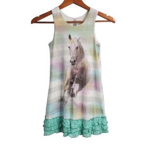 Ella & Lulu Kids Girls Glitter Stripes Horse Layered Lace Hem Tank Dress Size 10