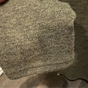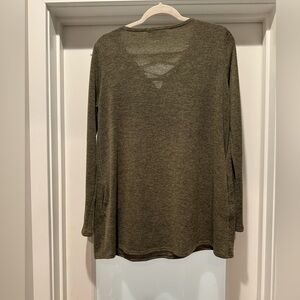 Soft and easy Ella Mara for Anthropologie olive green knit sweater featuring a stylish lace-up neckline with black grommet ties. A relaxed, slightly boxy silhouette makes this the perfect casual fall/winter layering top.