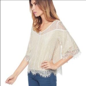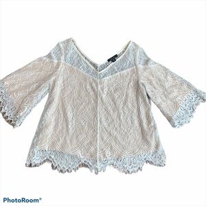 Ivory color flutter sleeve lace top by Ella Moss. Size XS. Excellent condition. Bin H