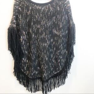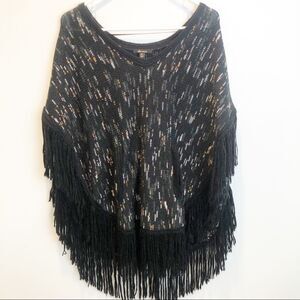 Ella Moss Black with Multicolor threads Fringe Poncho Excellent condition Pouch pocket Xs/s 1