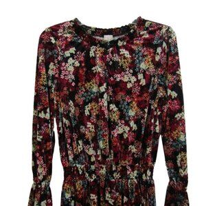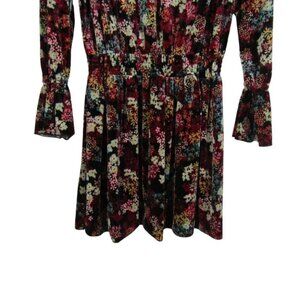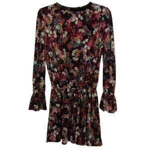 Ella Moss big girl's black multicolor floral long sleeve velvet dress with smocked elastic waist.