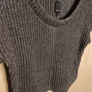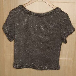 Ella Moss Black Silver Cropped Short Sleeve Sweater Small