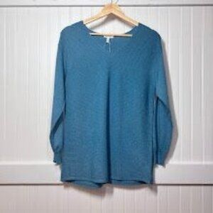 Ella Moss Blue Long Sleeve Ribbed Knit Super Soft Sweater V Neck Women's Small