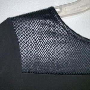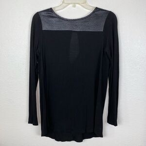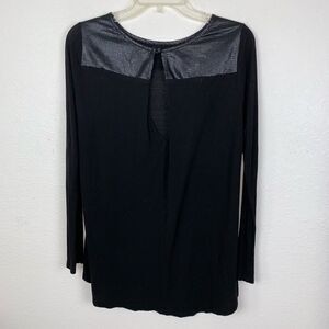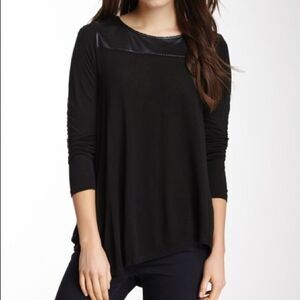 - Wide scoop neck - Long sleeves - Back keyhole with button closure - Contrast yoke - Hi-lo hem - with faux leather contrast. Comfy and stylish! In excellent condition with no flaws.