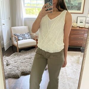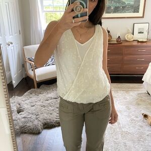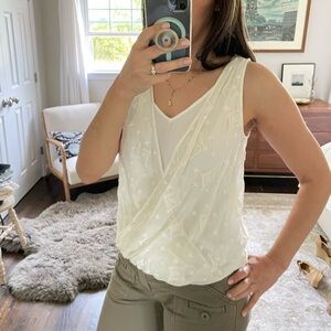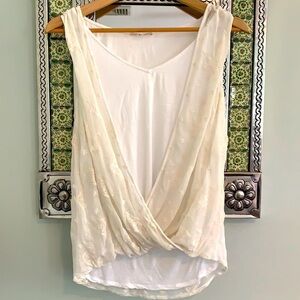 Ella Moss Cream 100% Silk Chiffon Faux Wrap Top. Size small. Very good condition. Underarm to Underarm 17” Bin H