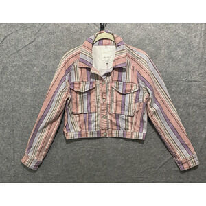 Ella Moss Denim Crop Jacket Girls Juniors M Purple Pink Striped Retro Y2K