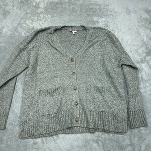 Ella Moss Gray Button Cardigan Sweater M Ribbed Hem Pockets a1290