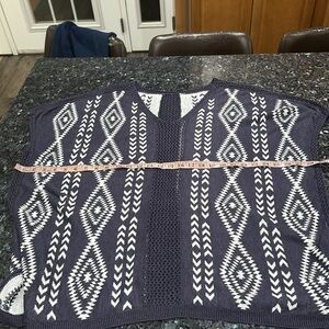 Stylish and lightweight open-knit top with a bold geometric pattern.