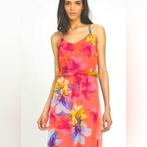 Ella Moss Hibiscus Floral Silk Strapless Dress in guava L $138 spring cocktail
