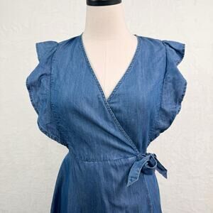 Ella Moss Jessie Dress Blue Chambray Wrap Mini Preppy Western Country Size S