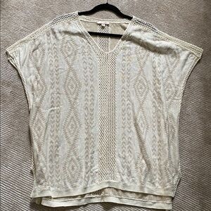 Ella Moss Kimono Linen Blend Crochet Knit Poncho Style V-Neck Cream Sweater XS/S