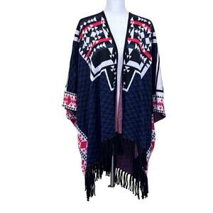 Ella Moss Lima Fringe Cardigan, red/blue, NWT, medium/large, hippie, bohemian