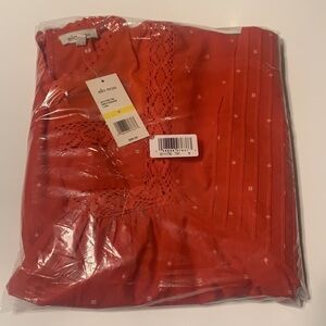 Ella Moss Lyra Puffed Pintucked Woven Blouse Size Medium, Color Spicy Orange, Complete a delicate feminine ensemble with a puffed pintucked long sleeve woven top with squared neck, tie string cuff, shirring at empire waist and finished hem on a relaxed fit body. Allover print - Cotton construction - 3/4 sleeves - Tie string cuff - Keyhole back -