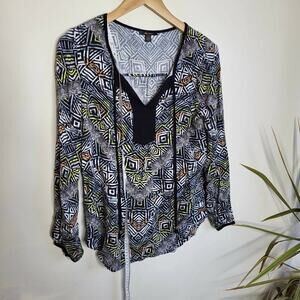 Ella Moss Maternity Tribal Blouse - Geometric - Black Multi