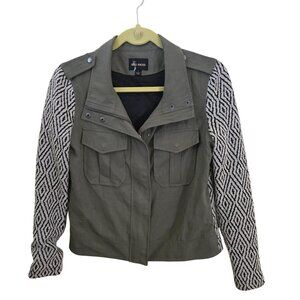 Ella Moss Minka Utility Jacket Olive Textile Sleeves Back Zip Snap Linen Size S