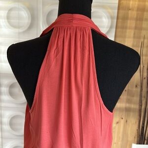 Ella Moss Halter Tank with a V neck. Salmon (peachy-orange) color. Sleeveless. Double waist tie. Very flattering. Lots of stretch.
