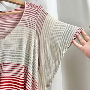 Ella Moss SMALL Cream Red Striped Knit Top Flutter Batwing Sleeve Handkerchief Hem