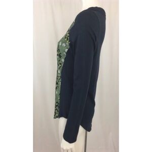 Ella Moss Blue Green Semi Sheer Front Color Block Top Small Bust: 36" Sleeve: 25" Length: 26"