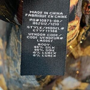 Silk Blouse by Ella Moss in Excellent Condition. Blouse has a Black Background with Floral Print and Gold Metallic Stripe Thread Throughout. Blouse is a Sheer, Lightweight Material.