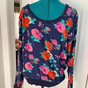 Ella Moss Silk Floral Print Sheer Lightweight Long Sleeve Casual Career Blouse