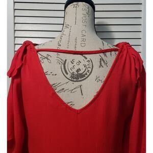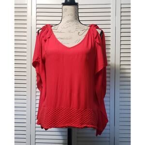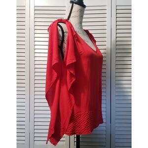 Ella Moss Sleeveless Flutter Top Women's XS Red Knot Shoulder Ties V-Neck Tank, Textured Hem