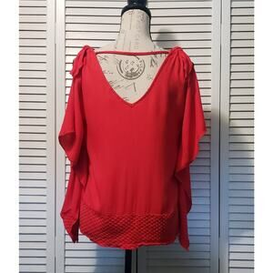 Ella Moss Sleeveless Flutter Top Women's XS Red Knot Shoulder Ties V-Neck Tank