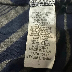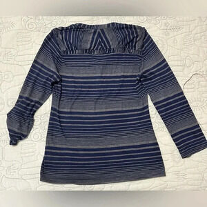 Ella Moss Striped Blue Gray Long Tab Sleeve Top Size L