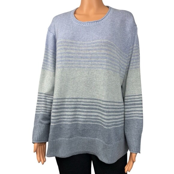 Ella Moss Sweater Blue Knit Striped Casual Blouse Shirt Winter Womens Size XL