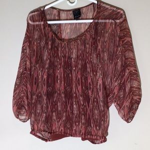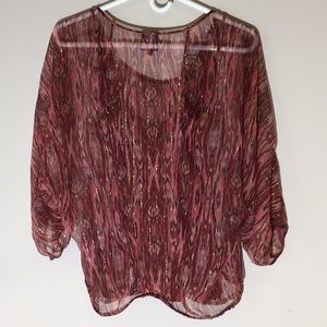 NWOT Ella Moss Too. Scheer flowing top three-quarter sleeve silk top with built-in tank top With adjustable straps. Can be worn with jeans or dress pants