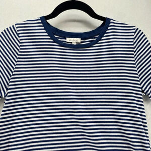 Ella Moss Top Women Size S Striped Crewneck Short Sleeve Jersey Cotton Blue