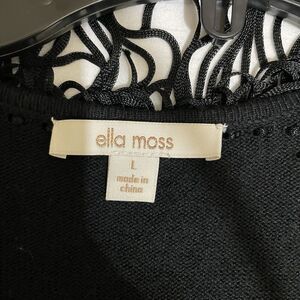 Add a touch of cowgirl chic to your wardrobe with this Ella Moss vest. The black vest features an open front design with fringe accents and is made from a blend of viscose and cashmere for a comfortable fit. Perfect for a festival or indie day out, this vest is a size L and has a regular fit. The Ella Moss Ravi model is Western-inspired and features a unique open front design. Ideal for adding a pop of style to any outfit, this vest is a must-have for any fashion-forward woman.