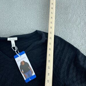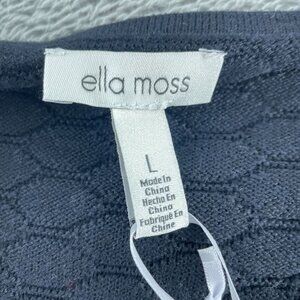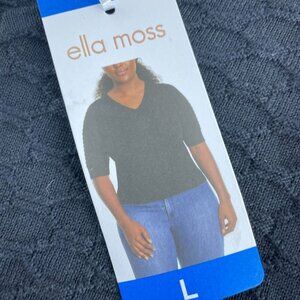 Ella Moss Womens Black Textured Knit Short Sleeve V-Neck Sweater Top L NWT 1834