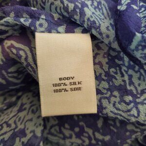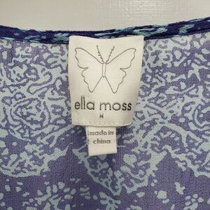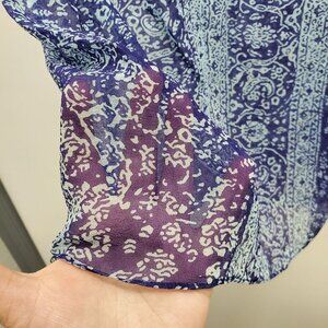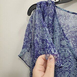 Ella Moss Women's Blue Aqua Paisley Silk Split Hem Lightweight Sheer Top Size M