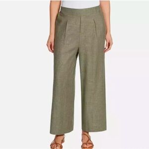Ella Moss Women's Green Wide-Leg Linen Blend Pants,, Size Medium