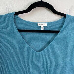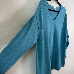Ella Moss Womens Plus XXL Blue V Neck Long Sleeve Ribbed Sweater Knit Top