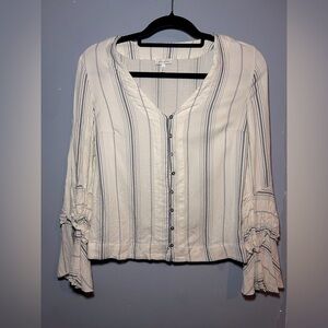 Ella Moss pinstripe top with ruffle sleeve detail, XS