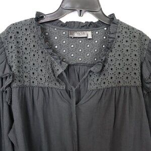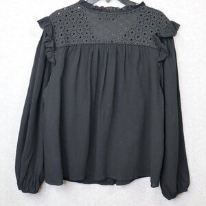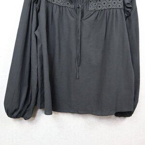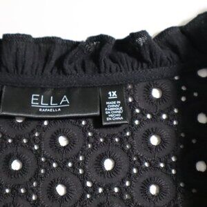 Ella Rafaella Eyelet Top Womens Plus 1X Cotton Ruffles Black Peasant
