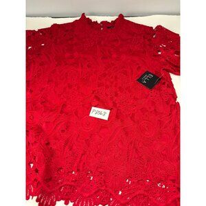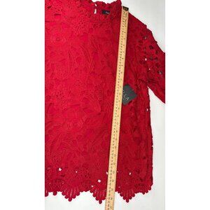 Ella Rafaella Womens Red Lace Blouse Size Large Stylish Floral Crochet Design