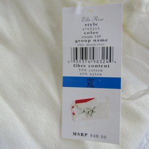 Ella Rose Women's The Majestic Cotton Blend Sleeveless Top Blouse in Cream Size XL, NEW Tags.
