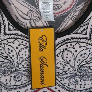 Ella Samani* Women's 3/4 Sleeve Boat Neck Curved Hem BOHO Design Blouse~ Size XL
