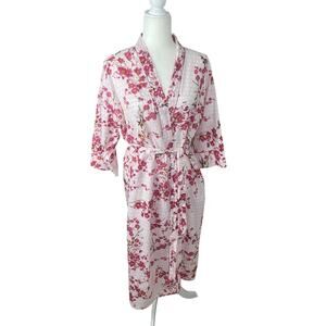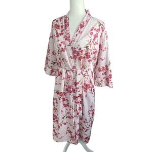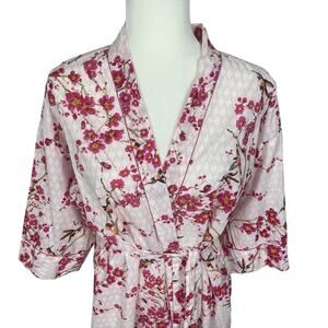 Ella Simone Cotton Hummingbird Lawn Wrap Robe Cherry Blossoms Pink Size Medium