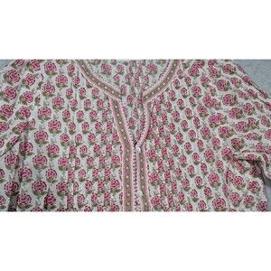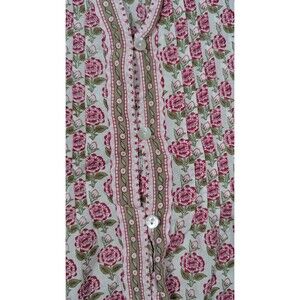 Ella Simone Women Top Medium Floral Button Up Pintucks Pleated Tunic Boho