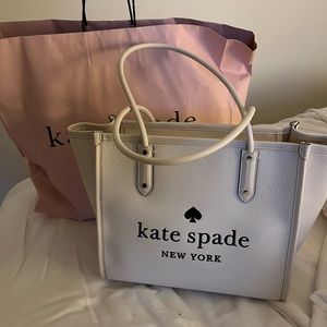 Ella Tote bag Kate Spade original White 11.2"h x 16.8"w x 6.8"d Handle drop: 8.5'' Pebbled leather Embossed logo Canvas lining Interior back zip pocket Drop in top zip closure Dust bag not included Warranty included