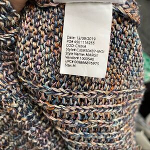 Multi color yarn, sleeveless style, textured design on front, side slits.