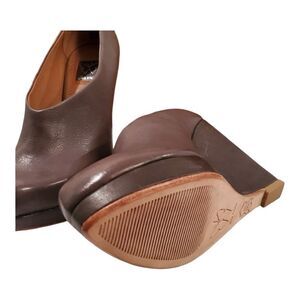 Ella Moss Wedges Brown 7. 4 1/2” back heel, back zippers and leather uppers. Black mark on the heel pictured. Scratches shown at back of heels. Preloved.