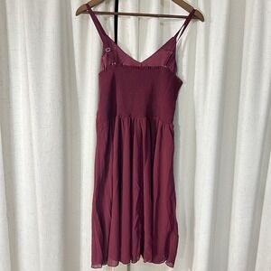 Ellames Women's V Neck Burgundy Mini Dress Lined Size L