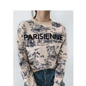 EllandEmm Parisienne Jungle Print Sweatshirt Pullover Tiger Asian Sz S B37