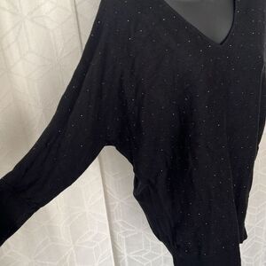Elle 3/4 Sleeve Lightweight Sweater Size small Cute black rhinestone detailing all in the front
