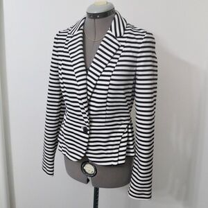 Elle Avery Striped Peplum Single Breast Blazer Soft Knit Casual Size Small