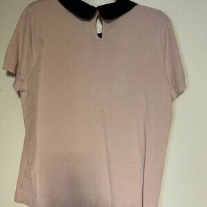 Elle Soft Ballet Pink Sweater with removable black collar, Size L. 72% rayon, 28% polyester